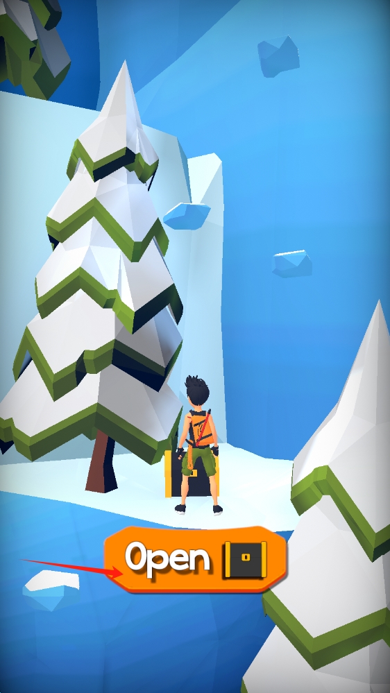 2、進(jìn)入游戲操作界面,身處雪山場(chǎng)景,留意周圍的寶箱,當(dāng)發(fā)現(xiàn)寶箱時(shí),點(diǎn)擊Open打開(kāi)寶箱,有機(jī)會(huì)獲得游戲道具或獎(jiǎng)勵(lì)。