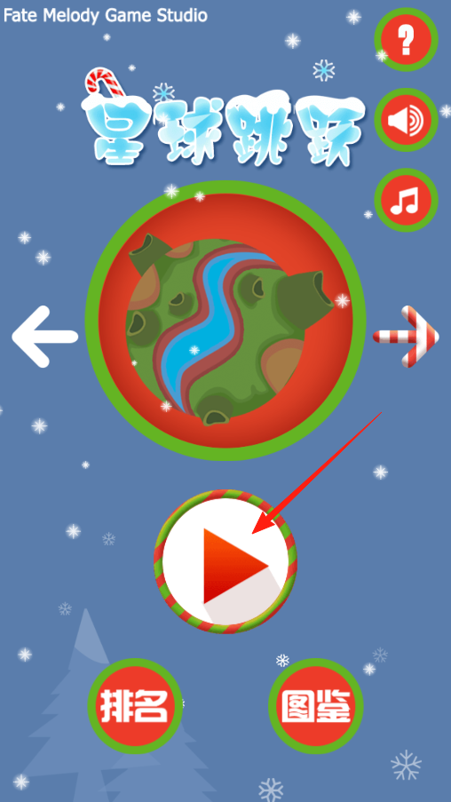 1、進(jìn)入星球跳躍游戲主界面,想開始冒險(xiǎn)就點(diǎn)中間紅色三角按鈕,畫面里還有排名圖鑒能看,不過先玩起來,操控角色在星球間跳躍闖關(guān)才有意思。