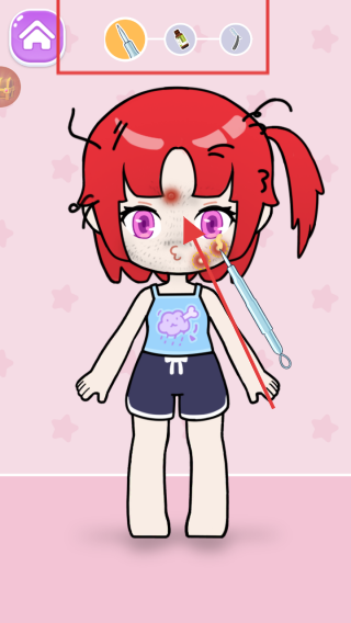 2、進入美容界面后,利用上方的美容工具,為角色進行皮膚護理,去除痘痘等皮膚問題,讓角色皮膚變得光滑細(xì)膩。