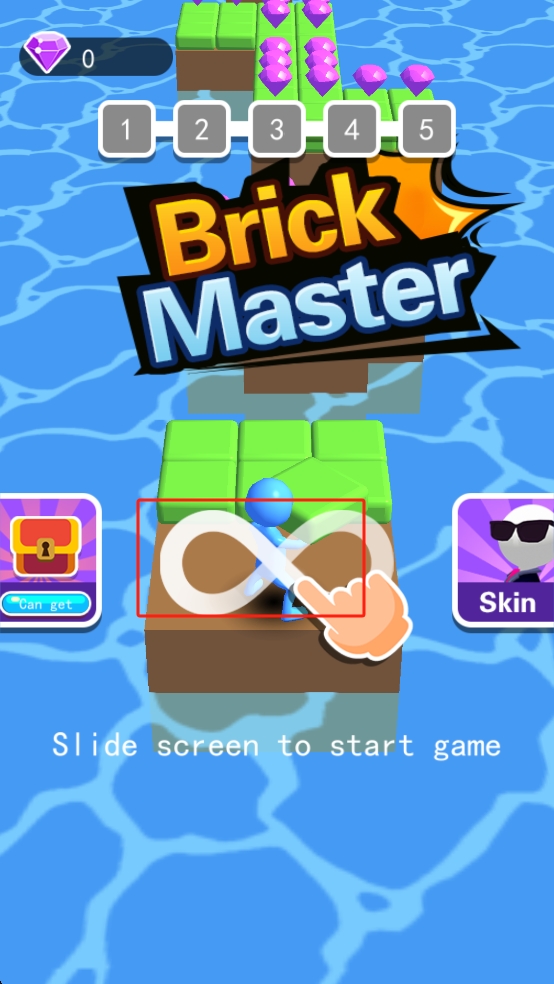 1、滑動(dòng)屏幕啟動(dòng)游戲,操控藍(lán)色小人進(jìn)入關(guān)卡,開(kāi)啟收集紫色寶石、堆疊綠色磚塊以搭建路徑的挑戰(zhàn)。