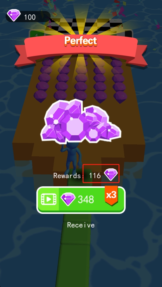 3、通關(guān)后獲取116鉆石獎(jiǎng)勵(lì),可點(diǎn)擊領(lǐng)取或觀看廣告翻倍,收獲資源用于解鎖皮膚或助力后續(xù)關(guān)卡。