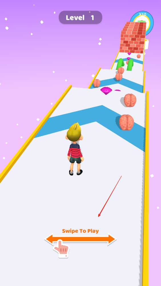 1、通過(guò)滑動(dòng)屏幕控制角色左右移動(dòng),移動(dòng)收集腦子和鉆石,收集的越多腦袋越大,經(jīng)過(guò)綠色橋梁的時(shí)候頭足夠大才不會(huì)從中間掉下去。