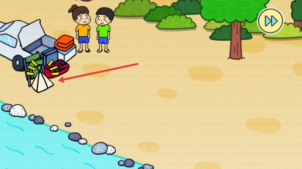 1、點(diǎn)擊三角按鈕,開(kāi)啟露營(yíng)任務(wù),進(jìn)入營(yíng)地場(chǎng)景后,先找汽車(chē)旁的露營(yíng)道具帳篷、裝備包,點(diǎn)擊收集。