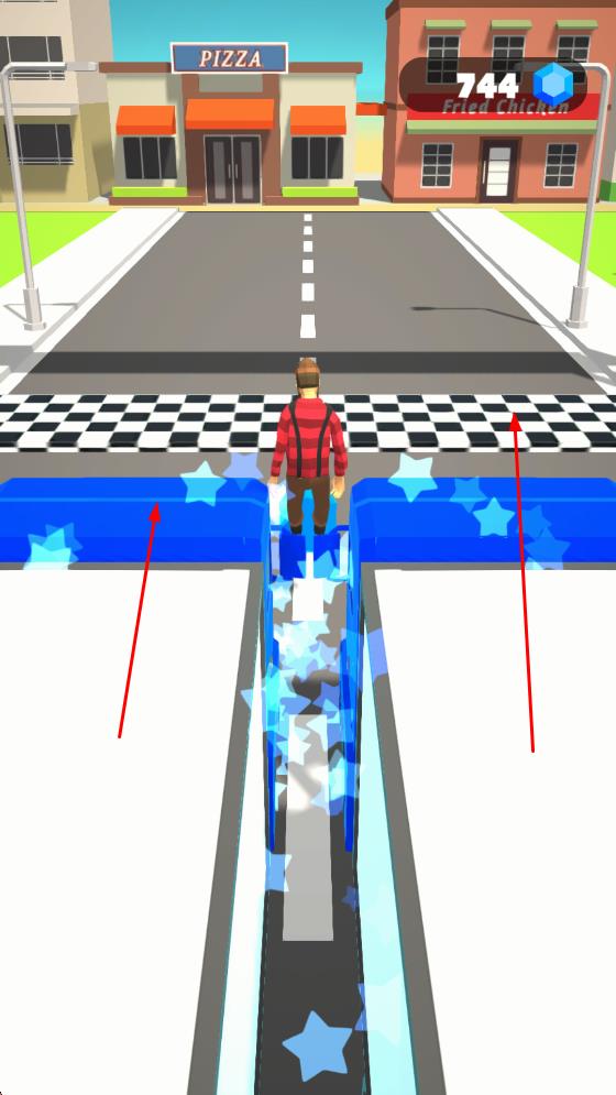 3、接近終點(diǎn)時,保持角色穩(wěn)定前進(jìn),通過終點(diǎn)線后,根據(jù)收集星星數(shù)量結(jié)算分?jǐn)?shù),留意沿途店鋪場景。