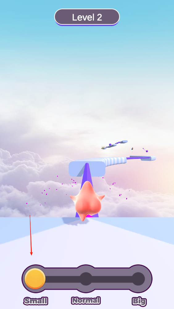 2、前方出現(xiàn)兩根間隔極開的桿子,需要將派大星的體積變大,這樣才不會從中間空隙掉下去。