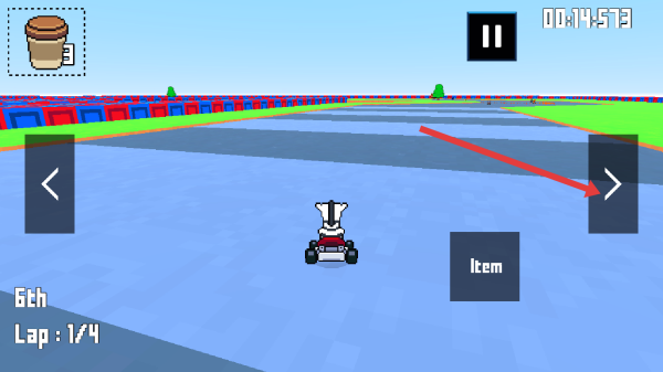 2、賽程中,留意畫面右側(cè)Item道具欄,拾取咖啡杯等道具后點擊使用,可干擾對手或增益自身過彎。