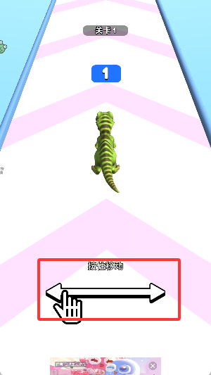 3、滑動屏幕移動角色,拾取賽道上的小恐龍。