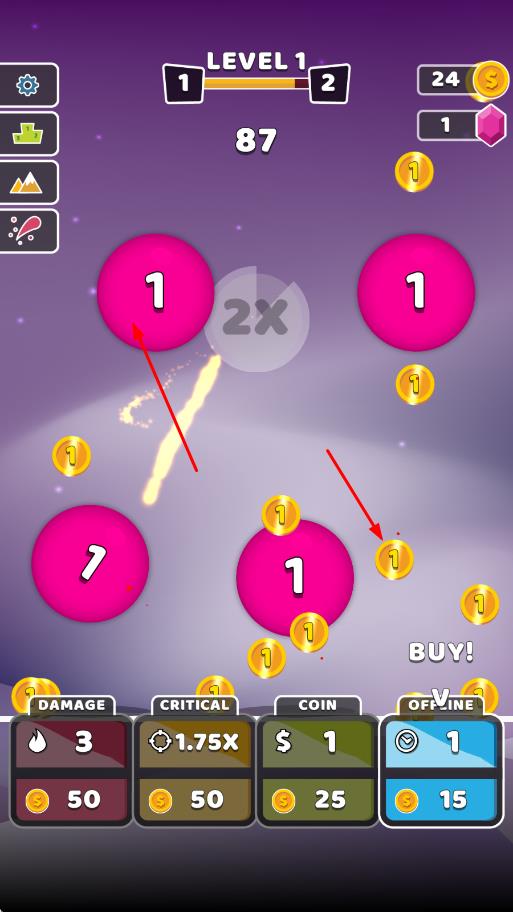 1、進(jìn)入游戲后,在初始關(guān)卡界面,通過(guò)手指觸摸屏幕或滑動(dòng)鼠標(biāo),操控忍者向移動(dòng)的病毒發(fā)起攻擊,完成首次切割,熟悉操作手感。