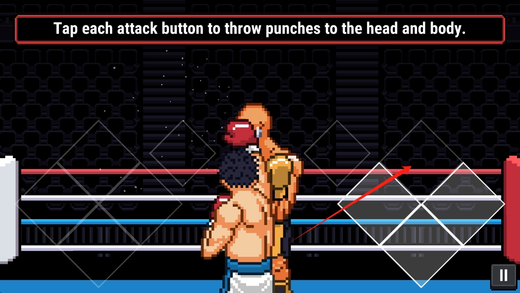 3、點擊攻擊按鈕,精準(zhǔn)擊打?qū)κ诸^部和身體,組合連招,消耗對手體力,贏得比賽勝利。