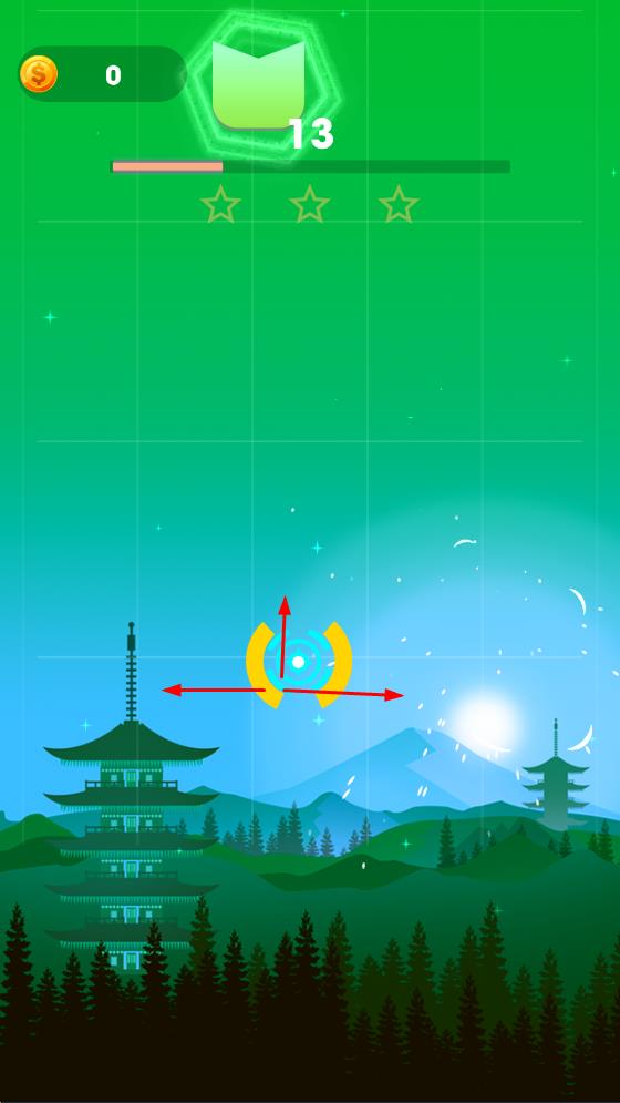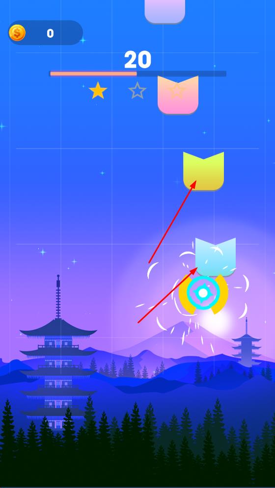 1、進(jìn)入操控黃色環(huán)形角色移動,留意左上角金幣數(shù)量與上方進(jìn)度條,初始階段推進(jìn)進(jìn)度條完成度,積累關(guān)卡進(jìn)度。