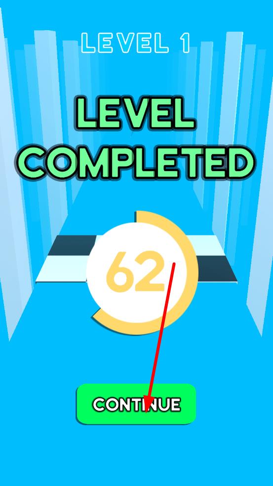 3、抵達(dá)黑白格終點(diǎn),結(jié)算界面依據(jù)切割數(shù)量、躲避失誤次數(shù)生成分?jǐn)?shù),金色圓環(huán)填充進(jìn)度對(duì)應(yīng)星級(jí)評(píng)價(jià),點(diǎn)擊繼續(xù),開啟下一關(guān)。