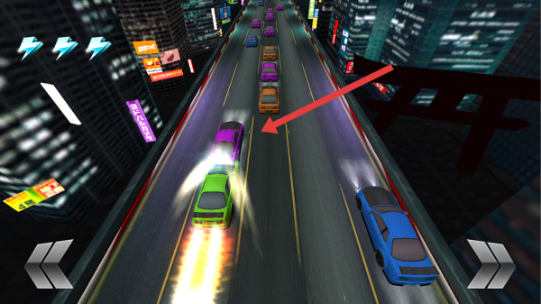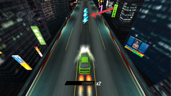 1、在駕駛賽車時,需要靠近并收集道路中央的藍(lán)色閃電道具,借助獲取車輛加速性能的增益。