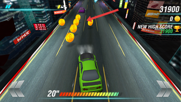3、沿著金幣分布的道路進(jìn)行駕駛,優(yōu)先收集道路中央金幣,同時觀察前方的路況,兼顧收益與安全。