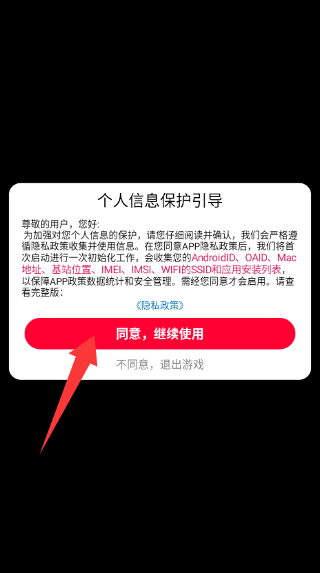 1、點(diǎn)擊個(gè)人信息保護(hù)引導(dǎo)里的同意繼續(xù)使用。