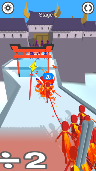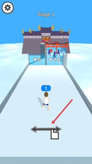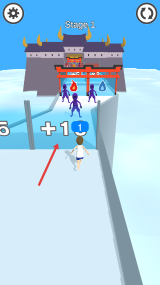 2、在奔跑過程中,穿過帶有不同數(shù)字的門,增加角色的數(shù)量,準備和前方的敵人戰(zhàn)斗。