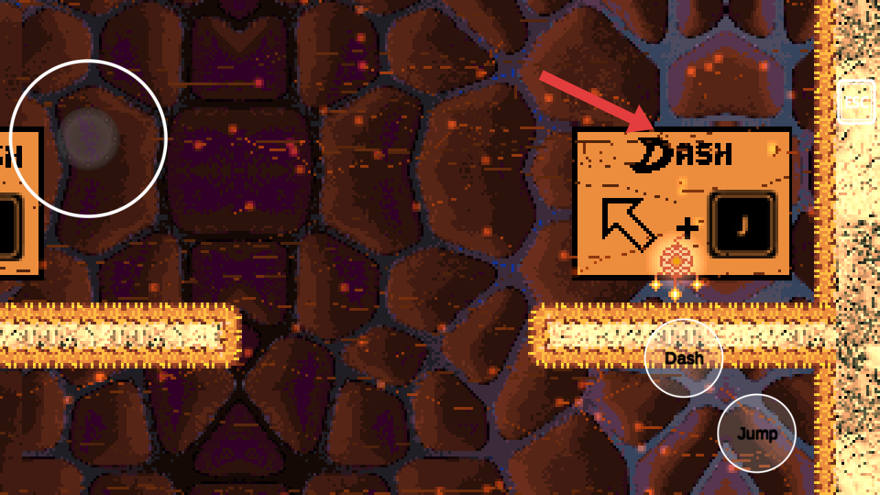 3、需要掌握沖刺的技能,通過(guò)方向鍵與Dash按鍵組合觸發(fā)沖刺,快速突破跳躍場(chǎng)景中的阻礙。