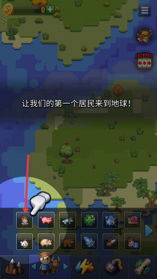 1、在游戲中,選擇第一個(gè)居民,讓他來(lái)到你的地球世界,準(zhǔn)備后續(xù)發(fā)展。