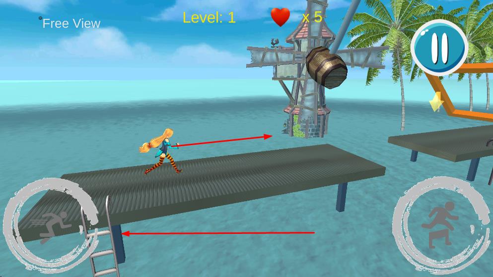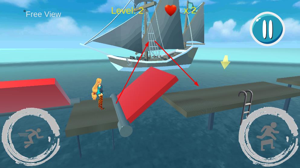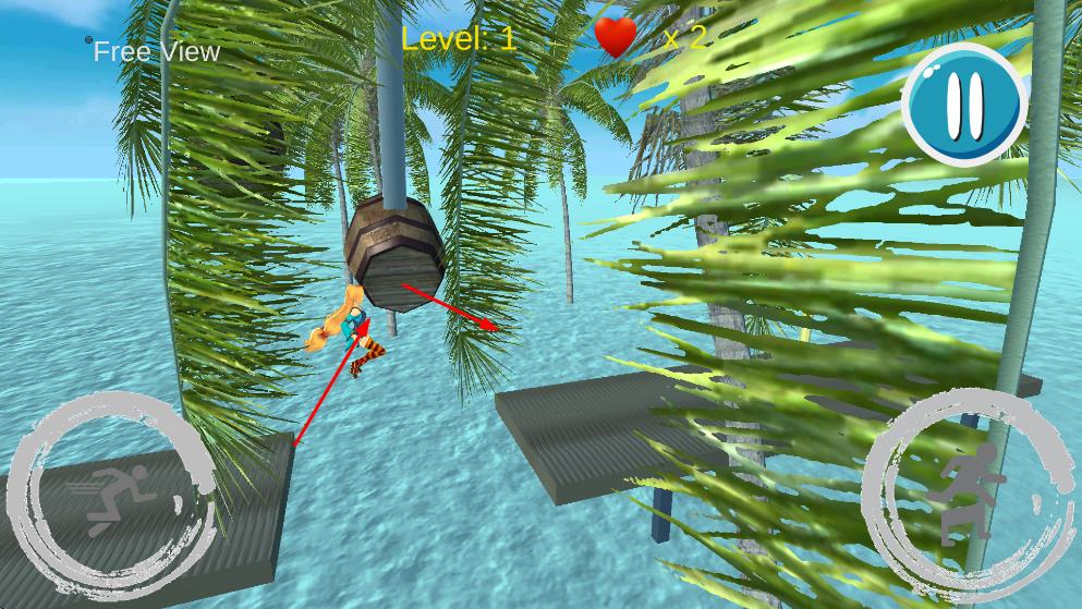 1、操控角色在平臺上移動,通過左側(cè)按鈕控制奔跑,右側(cè)按鈕控制跳躍。