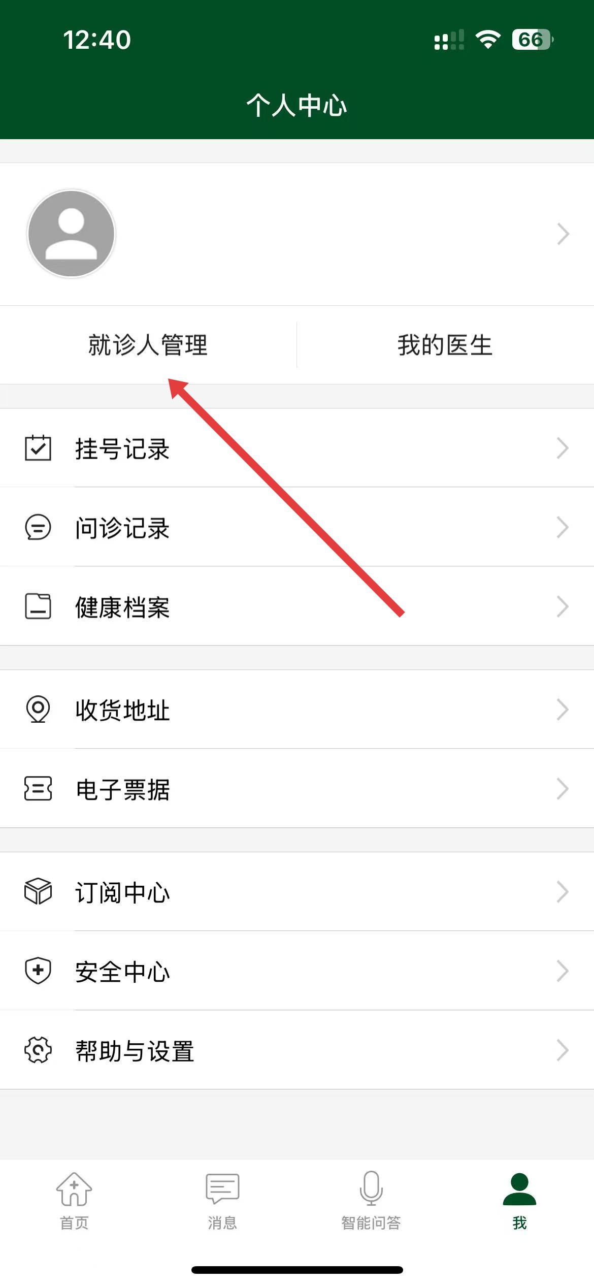 2、在界面中找到就診人管理選項(xiàng)并點(diǎn)擊進(jìn)入。