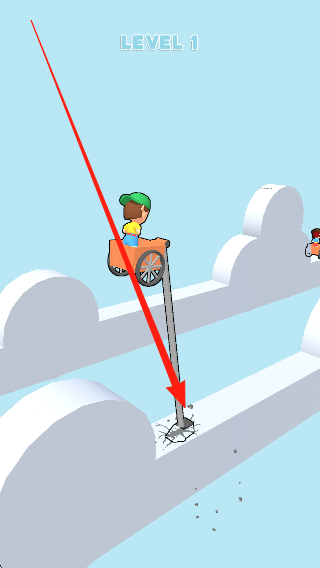 1、長按屏幕控制錘子變長,熟悉二輪車的控制方式,了解錘子的伸縮功能,準(zhǔn)備利用錘子開啟首次競速挑戰(zhàn)。