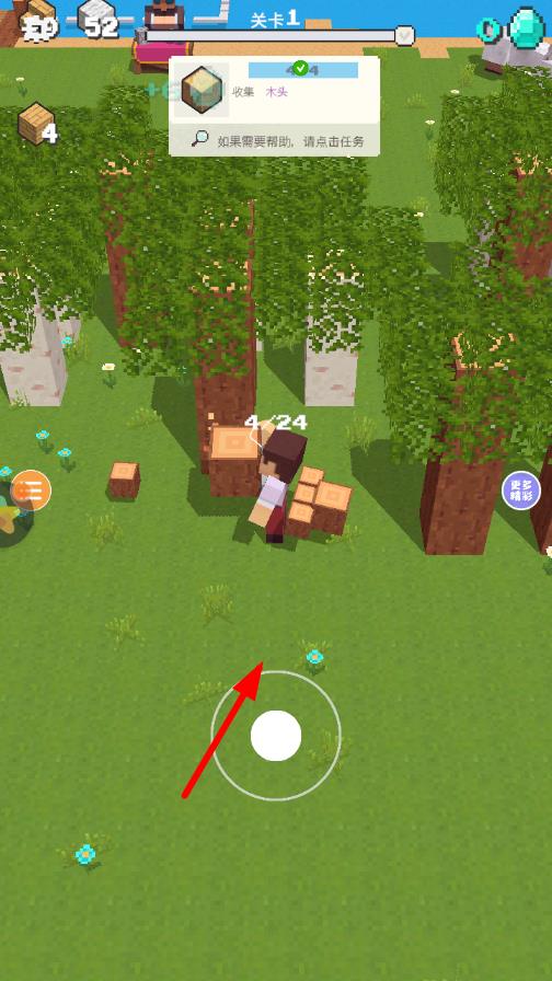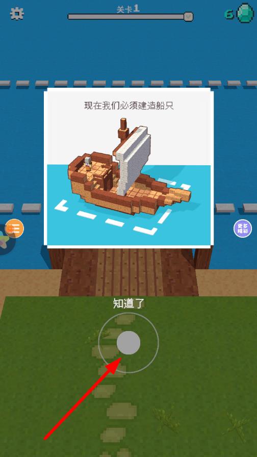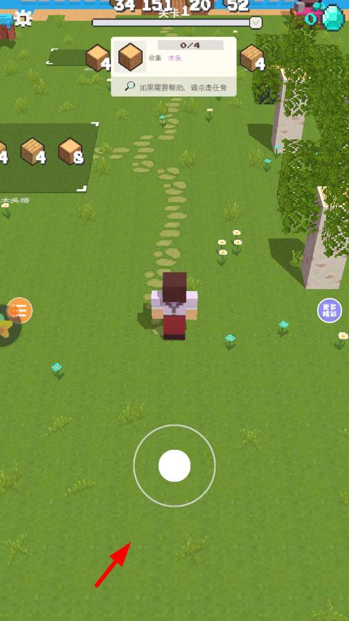 1、進(jìn)入游戲后,在初始地圖點(diǎn)擊地面采集基礎(chǔ)方塊,拖動(dòng)方塊到目標(biāo)位置搭建初始小屋,作為探索與建造的起點(diǎn)。
