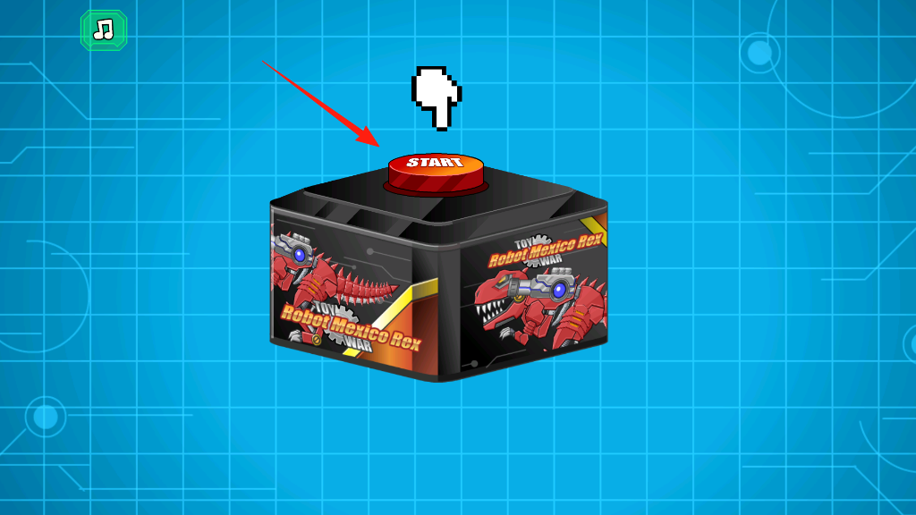 2、點完P(guān)LAY,來到啟動界面,有個帶START的紅按鈕,點這按鈕啟動機械恐龍的組裝或者戰(zhàn)斗準備流程,開啟游戲關(guān)卡,讓機械恐龍動起來,開始冒險。