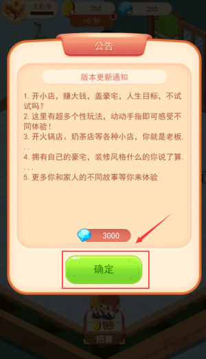 2、點擊紅框確定按鈕,確認(rèn)版本更新公告內(nèi)容。