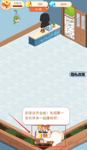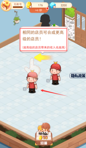3、點擊紅框招募按鈕,花費10金幣雇傭新店員。