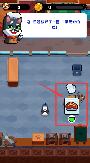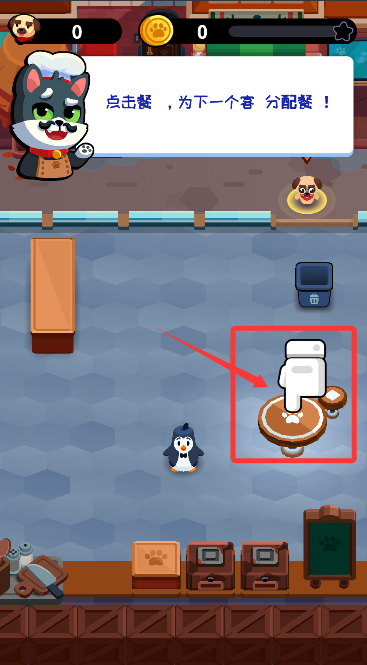 1、來到餐廳主場景,根據(jù)引導點擊空閑餐桌,及時為動物顧客安排就座。