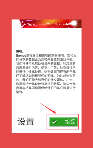 2、點擊紅框接受按鈕,確認數(shù)據(jù)使用政策條款。