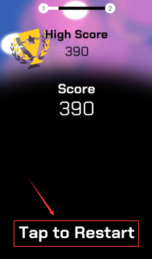 4、點擊紅框重啟區(qū)域,獲得390分后重新開始。
