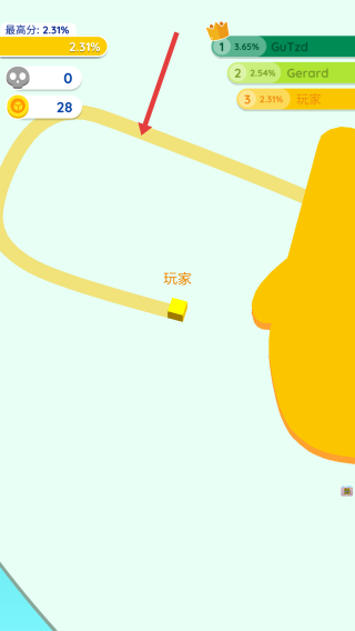 2、如果遇到其他的玩家,要先觀察他們的移動的軌跡,如果看到對方在擴(kuò)張,可找準(zhǔn)時機(jī)截斷他們的路徑。