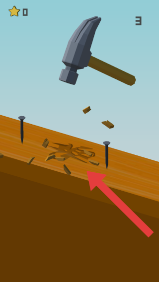 3、目前得分顯示3,玩法考驗(yàn)了反應(yīng)能力,遇到釘子需要馬上錘子,但過程中不得錘到桌板,否則會馬上返回起點(diǎn)。