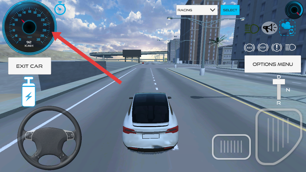 1、進(jìn)入游戲,需要觀察左上角儀表盤,掌握實(shí)時(shí)車速如92KMH,了解當(dāng)前的車輛速度狀態(tài)。