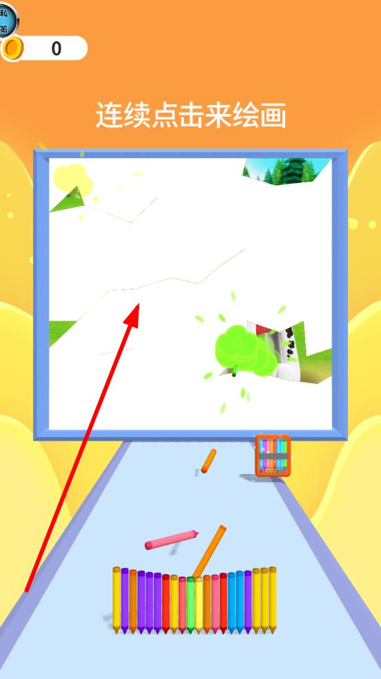 2、接近畫板時,連續(xù)點擊,觸發(fā)繪制,將用收集到的彩筆,在白色畫板上填上顏色,玩家在前期需要盡可能收集多的彩筆。