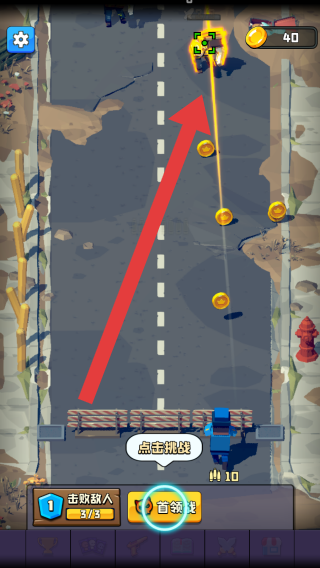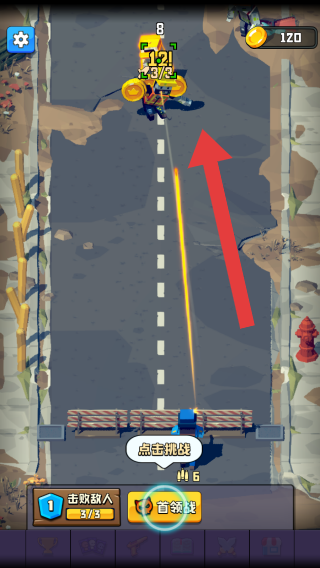 2、完成擊敗敵人任務(wù)后,看到首領(lǐng)戰(zhàn)的按鈕亮起,點(diǎn)擊進(jìn)入首領(lǐng)挑戰(zhàn),沿箭頭方向追擊首領(lǐng)車輛。