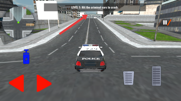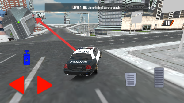 2、需要操控警車自己的轉(zhuǎn)向,根據(jù)左上角的地圖路線來查看罪犯的位置進行行駛,維持追捕的方向。