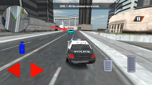 3、找到罪犯的車輛后,需要瞄準(zhǔn)藍色罪犯的車輛,駕駛自己的警車進行撞擊,達成關(guān)卡目標(biāo)。