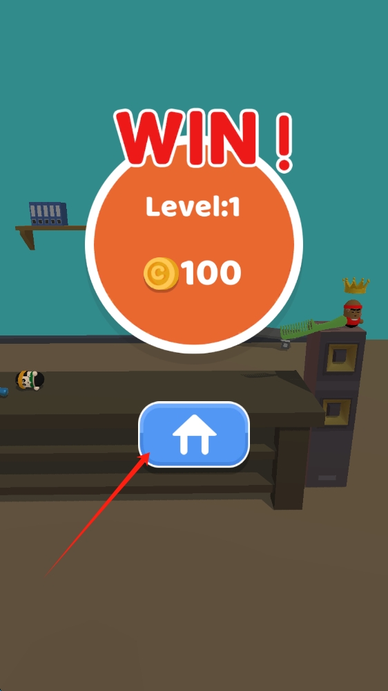 3、戰(zhàn)斗勝利后,點(diǎn)擊箭頭按鈕,進(jìn)入下一關(guān),繼續(xù)挑戰(zhàn),同時(shí)利用獲得的100金幣,提升角色能力或購(gòu)買(mǎi)道具。