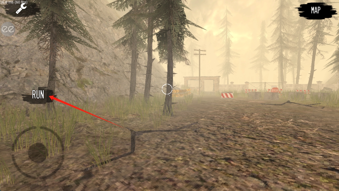 2、進(jìn)入游戲操作界面后,熟悉左側(cè)虛擬搖桿的使用方法,通過它精準(zhǔn)控制角色移動方向,遇到緊急情況,點(diǎn)擊RUN按鈕讓角色快速奔跑。