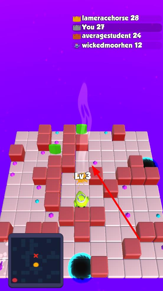 滑塊競技場是一款多人在線競技作品,操控萌趣滑塊在方格地圖穿梭,收集紫色晶體提升等級,避開對手干擾,爭奪金色獎杯,地圖布滿紅色障礙與傳送黑洞,需預(yù)判路徑、搶占資源,在實時排名中角逐第一,體驗快節(jié)奏的策略對抗與成長快感,構(gòu)建從新手到競技高手的進階循環(huán)。