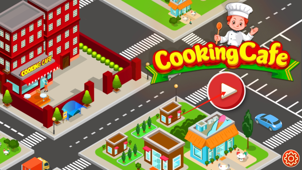 1、在游戲啟動(dòng)界面,點(diǎn)擊紅色播放按鈕,開啟Cooking-Cafe的烹飪之旅,進(jìn)入充滿趣味的咖啡館經(jīng)營(yíng)世界。