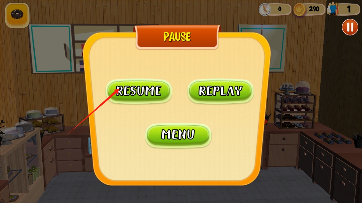 2、游戲過程中,若需暫停,可進(jìn)入暫停界面,根據(jù)情況選擇RESUME繼續(xù)游戲。