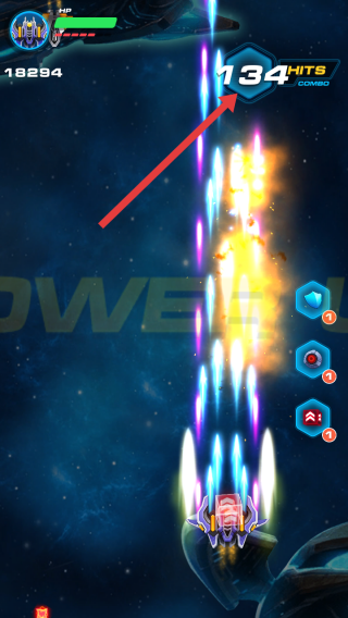 2、在戰(zhàn)斗中持續(xù)的攻擊對(duì)面敵人,可以積累134HITS的連擊數(shù),提升戰(zhàn)斗輸出的效率,加快火力升級(jí)。
