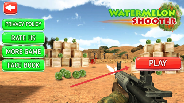 1、點擊Watermelon-Shooter主界面紅色PLAY按鈕,進入武器選擇頁面,挑選射擊武器。