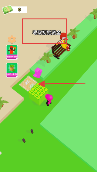 2、進入游戲后,先進行收取初始資金操作,獲取資金用于餐廳后續(xù)建設(shè)與運營。