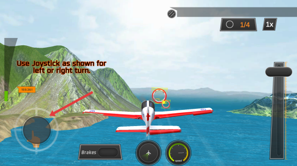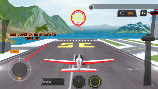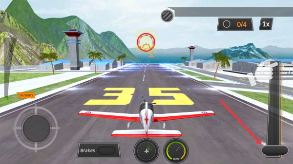 2、在游戲過程中,根據提示使用虛擬搖桿,向下滑動,控制飛機起飛。