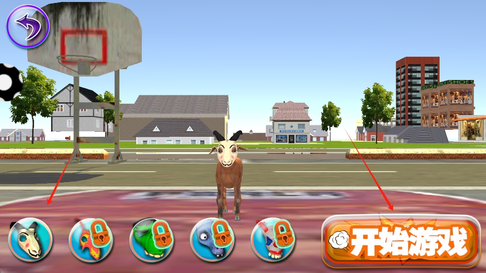 1、進(jìn)入選角界面,選定山羊角色,左側(cè)還有山羊皮膚可以選擇解鎖,然后點(diǎn)擊右下角的按鈕即可開始游玩。