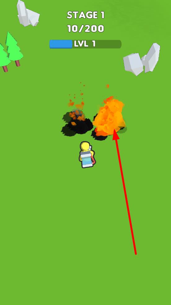 1、進入STAGE 1,操控角色移動至火源處,滅火器自動觸發(fā)噴射,觀察火源位置,先撲滅蔓延快的明火,開啟首關(guān)救援。