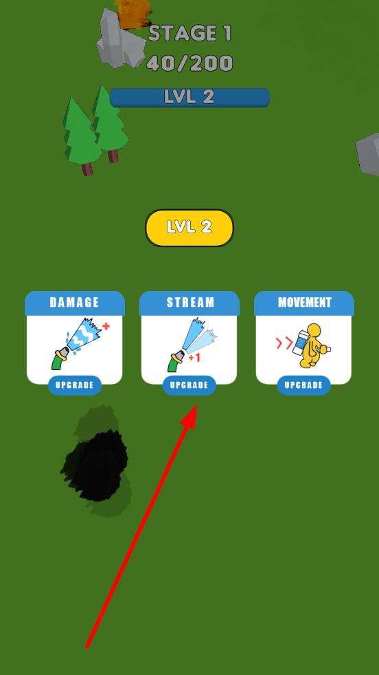 3、撲滅當前場景所有火焰后,解鎖LVL2等新挑戰(zhàn),可以使用金幣對屬性進行升級,開啟下一關(guān),面對更復雜的火場布局。